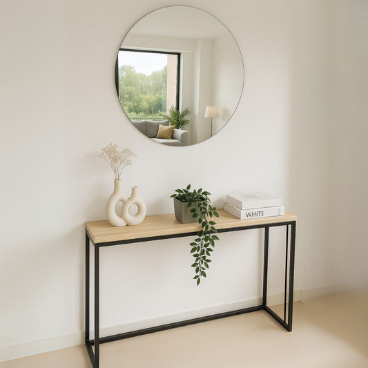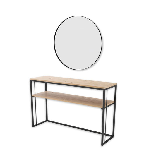 Combo Mueble Recibidor de 2 niveles Viena 100 cm + Espejo circular 80 cm